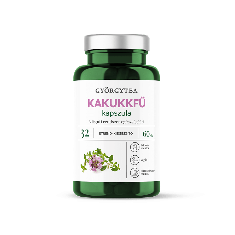 Györgytea kapsula z materinej dúšky – výživový doplnok pre zdravie dýchacieho systému. Materina dúška podporuje zdravie horných dýchacích ciest, má upokojujúci a príjemný účinok na hrdlo, hltan a hlasivky. Prispieva k zmierneniu podráždenia hltana a hrdla.